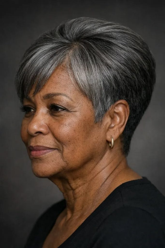 Not only can older Black women with very gray hair look stylish in a short cut, many of the most visually striking and most genuinely powerful short hair looks in the world belong to older Black women with natural gray or silver hair. Gray locs at a short length, a silver natural afro, a gray short bob, a silver tapered natural cut, all of these combinations create looks of extraordinary beauty and power. The key to making gray hair look intentional and stylish rather than simply aged is the quality and the precision of the cut and the consistency of the styling. A precisely cut, well-maintained short style on silver or gray natural Black hair communicates that this is a deliberate, beautiful choice, which is both very true and very powerful.